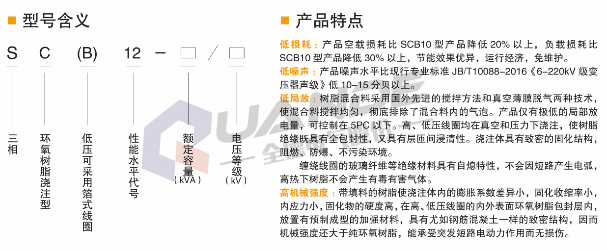 低噪聲:SCB12干式變壓器產品噪聲水平比現行**標準**/T10088-2016《6-220KV級變壓器聲級》低10-15分貝以上。 低局放:樹脂混合料采用國外先進的攪拌方法和真空薄膜脫氣兩種技術,使混合料攪拌均勻,完全排除了混合料內的氣泡。產品僅有很低的局部放電量,可控制在5PC以下。高、低壓線圈均在真空和壓力下澆注,使樹脂絕緣既具有全包封性,又具有層匝間浸清性。澆注體具有致密的固化結構,阻燃、防爆、不污染環境。